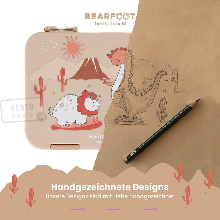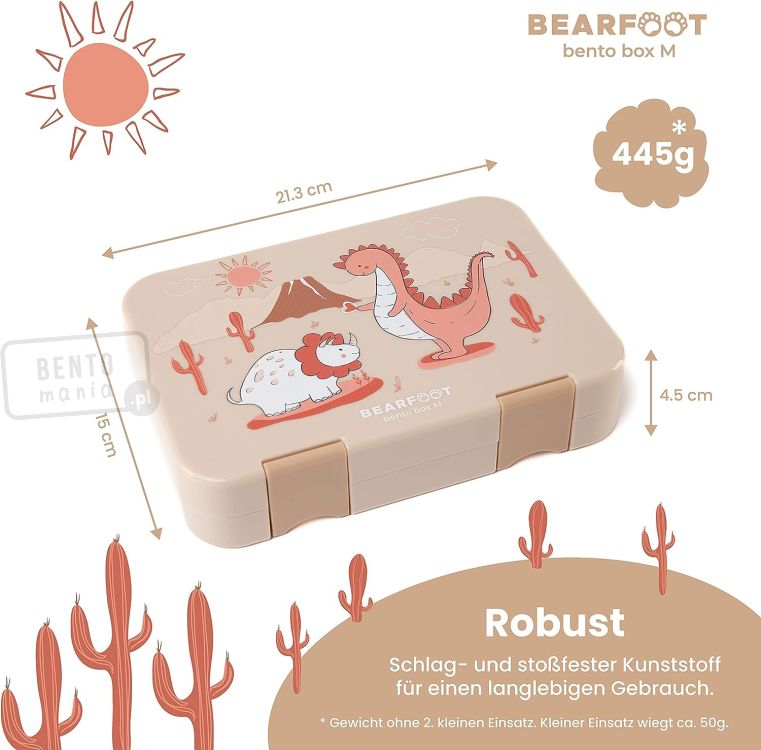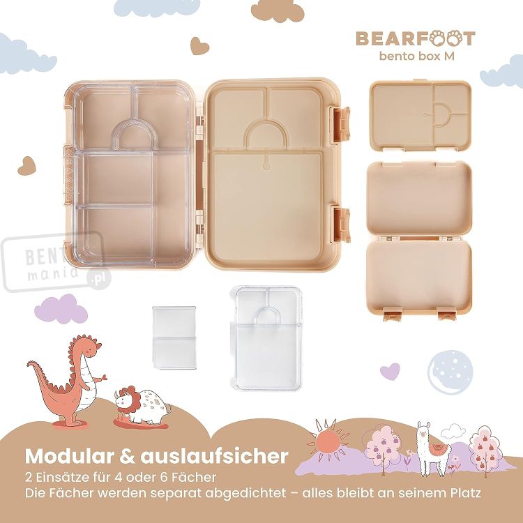 BEARFOOT bento lunchbox z 4/6 przegródkami dla dzieci 650 ml - Dino (modułowy Yumbox)