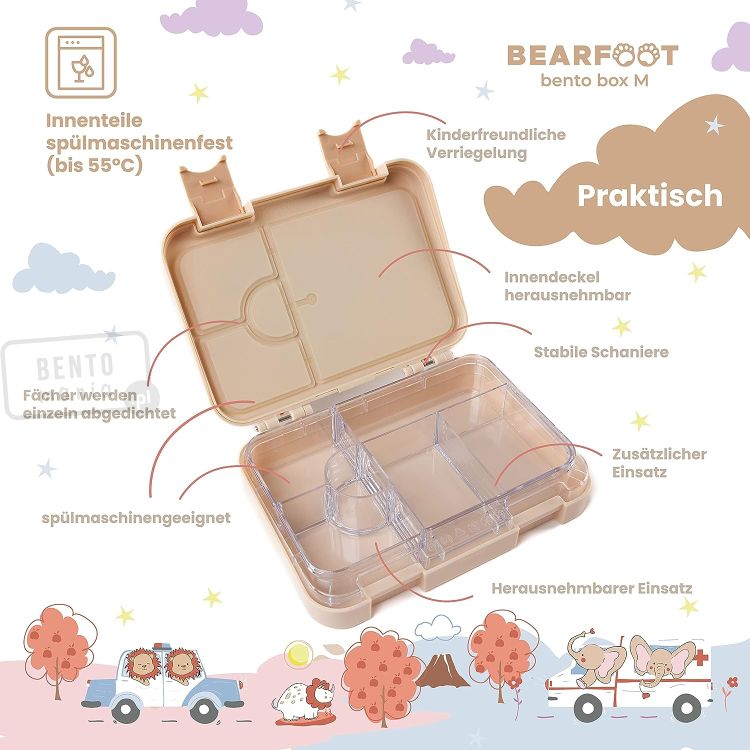 Elegancki, praktyczny i szczelny bento lunchbox dla dzieci z wyjmowaną wkładką (4 lub 6 przegródek) - ułatwia przygotowanie zbilansowanego, estetycznie wyglądającego posiłku, który Twoje dziecko może zabrać ze sobą do szkoły, na trening lub na wycieczkę.