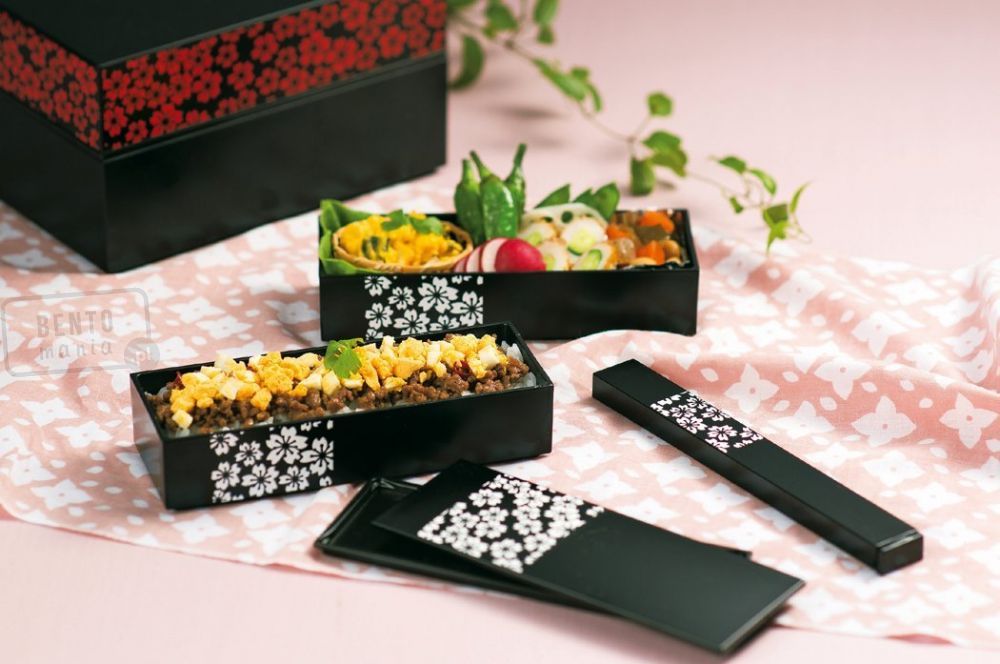 Japoński Bento Box Red Flowers Slim