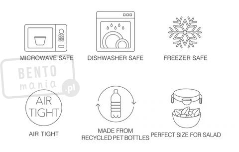 - miseczka przeznaczona jest do przenoszenia sałatek, makaronów, ale nie zachowuje 100% szczelności w przypadku produktów płynnych (płyny mogą wyciec)