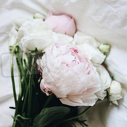 nuty serca: kwiaty piwoni, lilii i świeżo ścietych frezji,