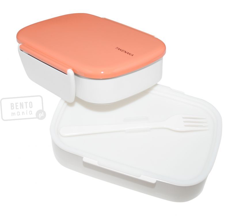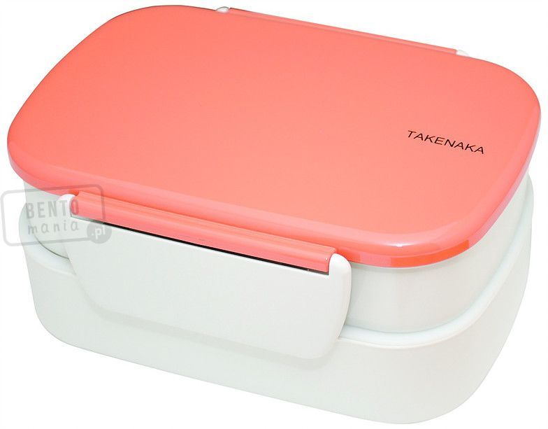 Dwupoziomowy, japoński lunchbox o pojemności 1,3 litra - koralowy z widelcem i przegródką