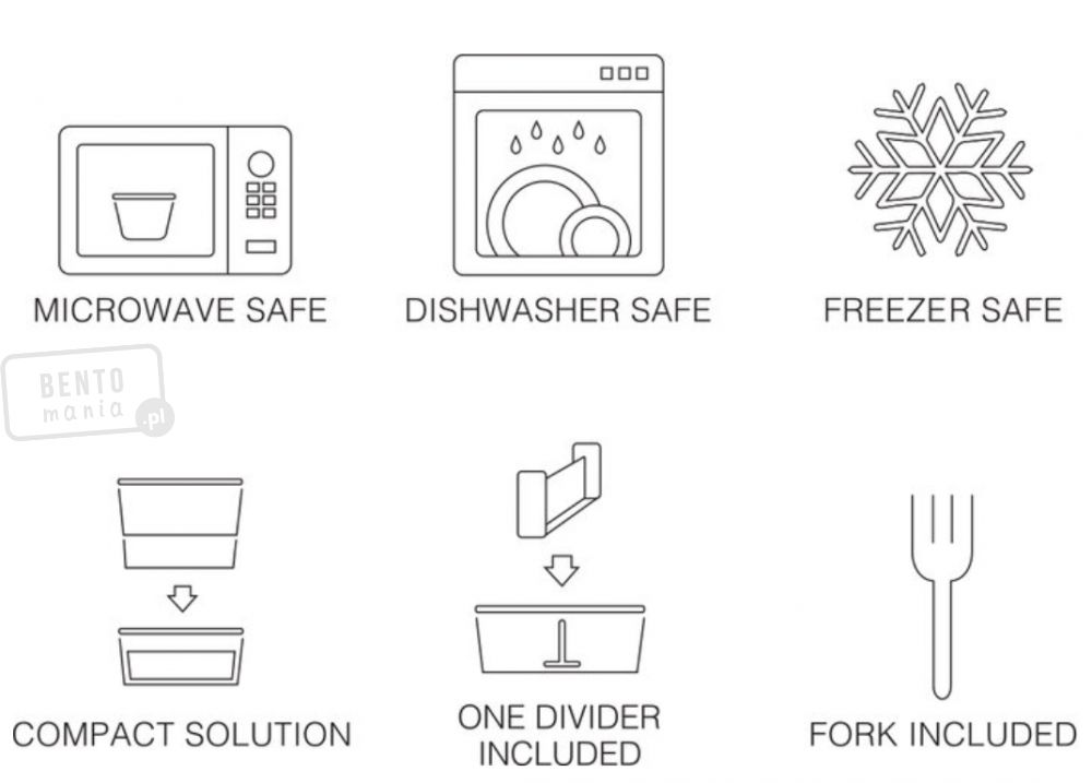 - wewnętrzna przekładka lub pojemnik: tak (ruchoma przegródka, dzięki której można oddzielić od siebie różne rodzaje pożywienia)