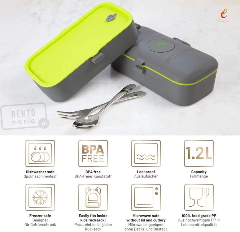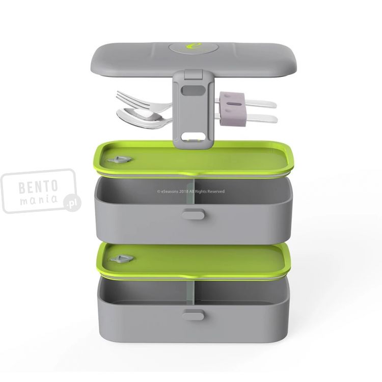 Polecenie produktu: Dwupoziomowy lunchbox z 4 przegródkami i sztućcami w zestawie - Dark Grey Green 1,2 l