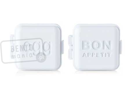 Foremki do jajek firmy Monbento, które pozwalają zmienić kształt jajek na kwadratowy oraz dodać napis "EGG" oraz "BON Apetit".
