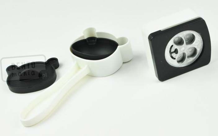 W zestawie jest foremka do ryżu z uchwytem ułatwiającym nabieranie i usuwanie ryżu oraz wykrawacz do wodorostów (nori), który pozwala dodać pandzie uszy, oczy i szczegóły ust.