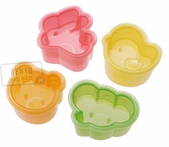 W zestawie są 4 foremki w kształcie zwierzątek - królik, kurczątko, słoń, miś