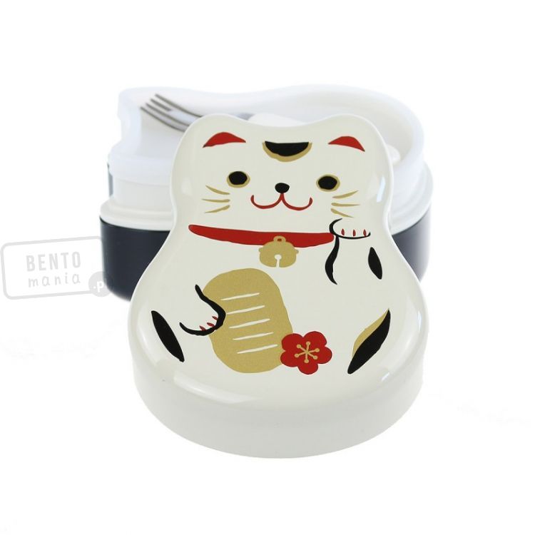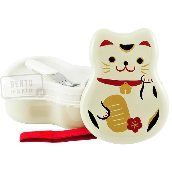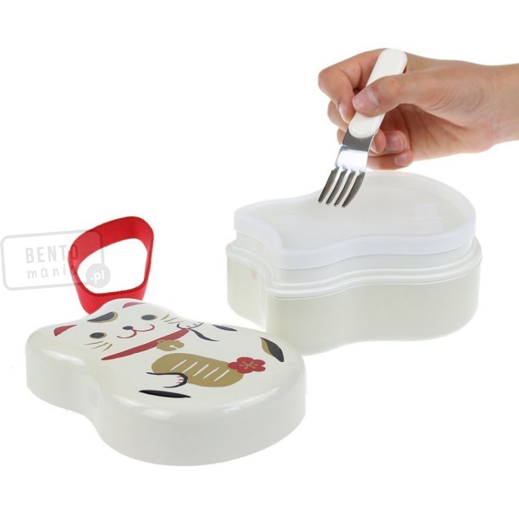 Polecenie produktu: Japoński bento box z widelcem - biały kot Maneki Neko