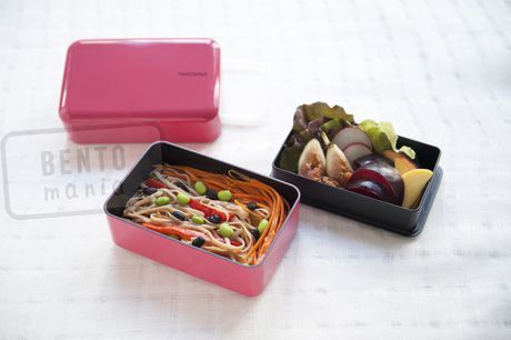 Takenaka Rectangle to nowoczesny, dwupoziomowy bento box, który świetnie nadaje się do pracy lub na prezent dla miłośnika Japonii i/lub prawdziwego japońskiego bento. Górny pojemnik jest szczelny - posiada specjalną pokrywkę zapobiegającą wyciekaniu płynów.