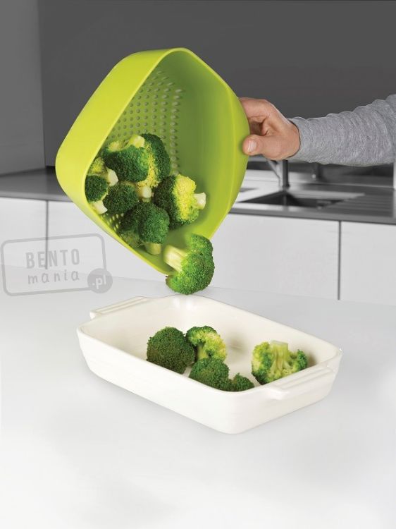 - durszlak w kolorze zielonym wykonany z wysokiej jakości, trwałego tworzywa sztucznego,