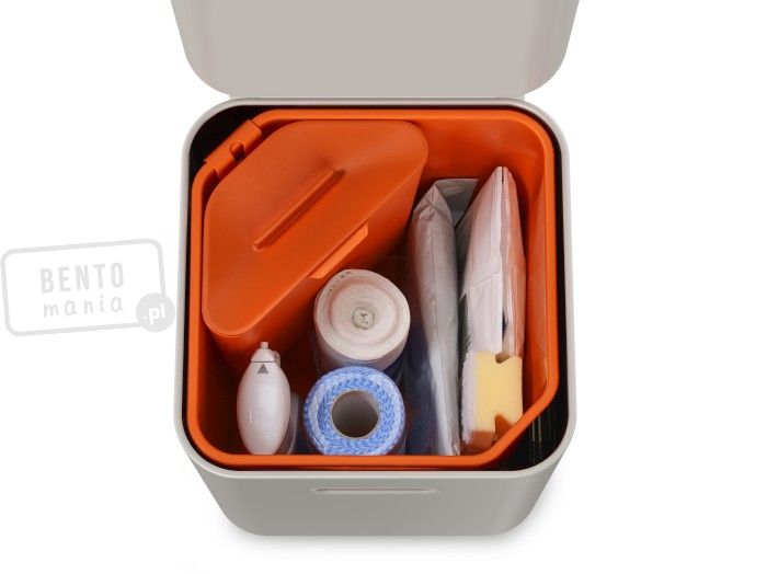 - wyjmowany pojemnik (4 l) na odpadki organiczne z pokrywką – można stawiać go na blacie, a pokrywkę zawiesić na krawędzi kosza,
