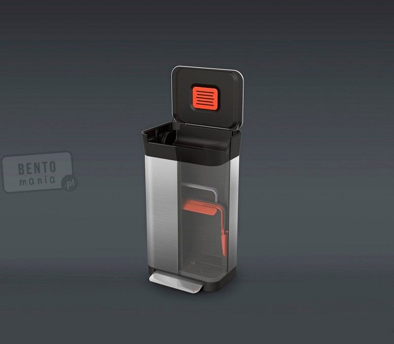 - kosz wyposażony w filtr węglowy neutralizujący zapachy, łatwy do wymiany, producent zaleca jego wymianę co 3 miesiące,