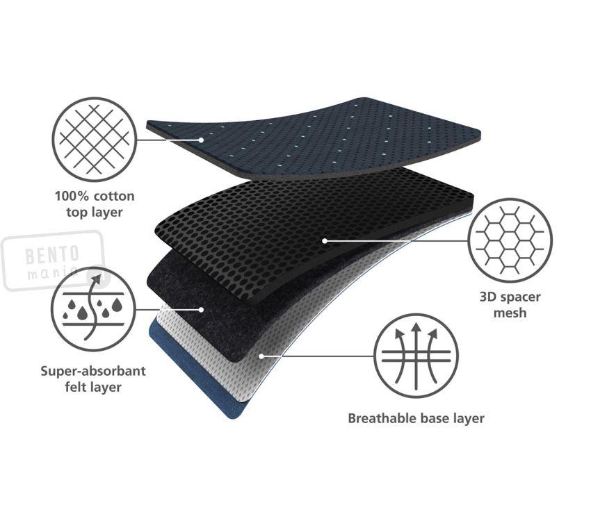 3. wyściółka z filcu o właściwościach hydrofilowych oraz absorbujących wodę,