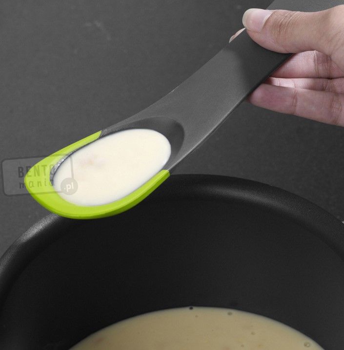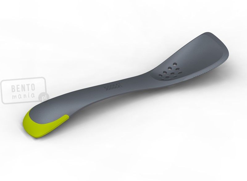 Jedno urządzenie pozwala na przewracanie mies czy racuchów, krojenie miękkich mies i ryb, rozsmarowywanie kremów, odcedzanie niewielkich porcji np.warzyw i nakładanie ich. Poręczne i ładnie wyglądające narzędzie jest wykonane z materiału odpornego na temperaturę do 200 stopni C.