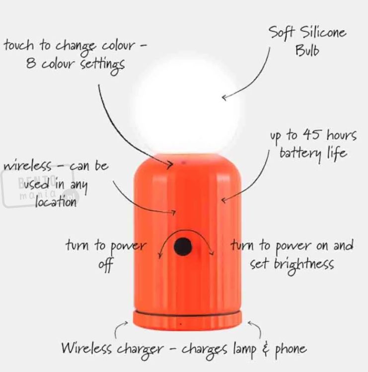 - w komplecie bezprzewodowa ładowarka, która umożliwia ładowanie lampki lub telefonu,