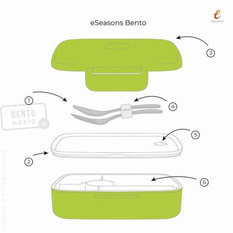 Polecenie produktu: Lunchbox z 5 przegródkami i sztućcami w zestawie - Eseasons 5 Green 1,3 listra