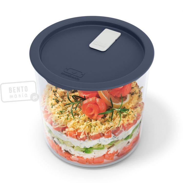 Monbento Jar denim 1 litr to szczelny pojemnik na sałatki zaprojektowany i wyprodukowany we Francji z materiałów przyjaznych dla człowieka i środowiska (nie zawiera BPA i innych szkodliwych substancji). Świetnie nadaje się do przechowywania posiłków zgodnie z filozofią bento, czyli różnorodnych, estetycznie wyglądających i możliwych do spożycia w dowolnym miejscu.