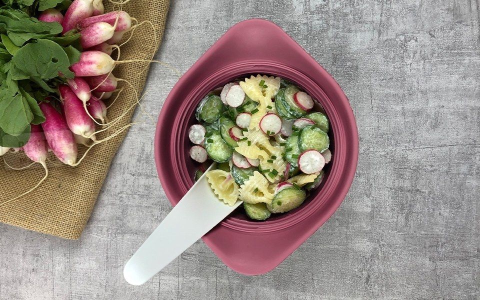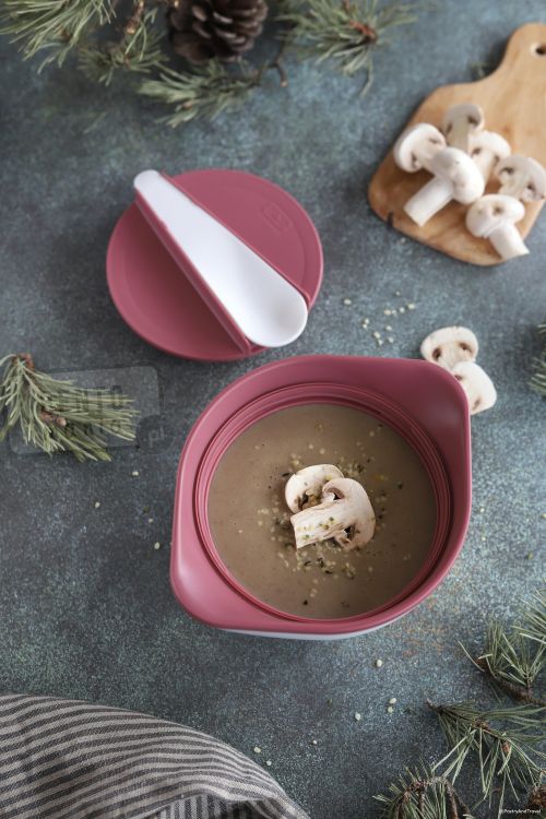 W pokrywce znajduje się poręczna łyżka, która pozwala cieszyć się ulubionym posiłkiem w pracy, czy podróży. Można używać w kuchence mikrofalowej (bez pokrywki), zamrażarce oraz myć w zmywarce.