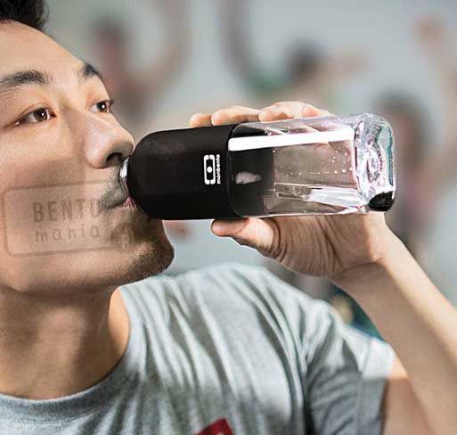 - górna część butelki pokryta jest specjalnym tworzywem zapobiegającym wyślizgiwaniu się z rąk