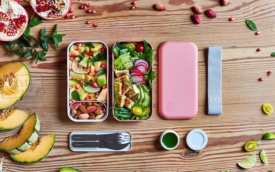 Dodatkowe akcesoria Monbento widoczne na zdjęciach takie jak sztućce, małe okrągłe pojemniczki, bidony itp. nie wchodzą w skład produktu (można je dokupić osobno).