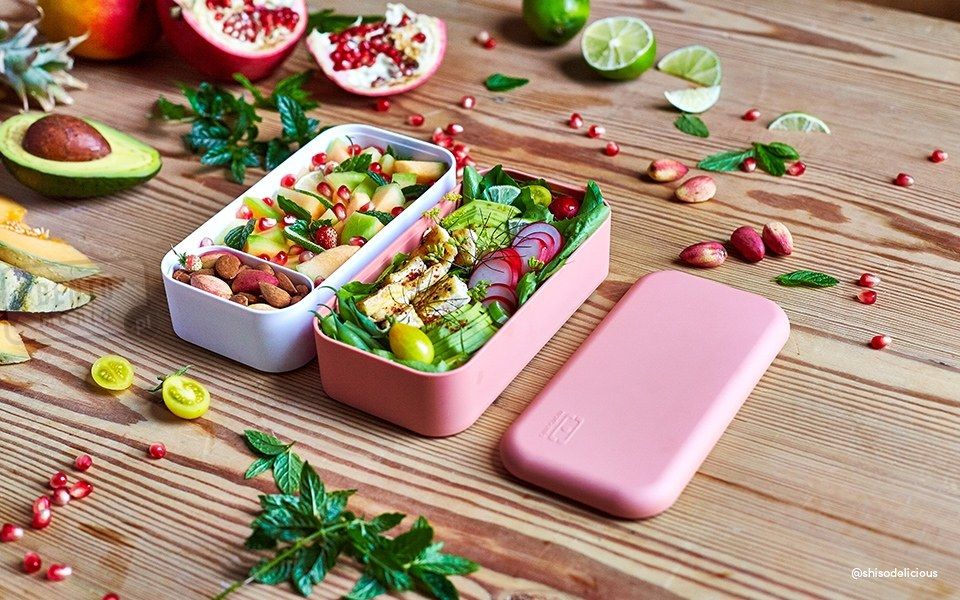 Bento box składa się z dwóch bardzo szczelnych pojemników, ustawianych jeden na drugim. Pojemniki pozostaną w stabilnej pozycji dzięki specjalnej elastycznej gumce. MB original można przechowywać w lodówce lub zamrażarce, można myć w zmywarce i można podgrzewać w kuchence mikrofalowej - są więc bardzo praktyczne, a przy tym eleganckie.