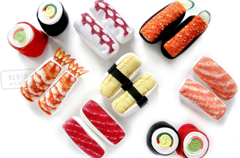 • zwinięte wyglądają jak prawdziwe japońskie sushi (skarpetki w kształcie sushi)