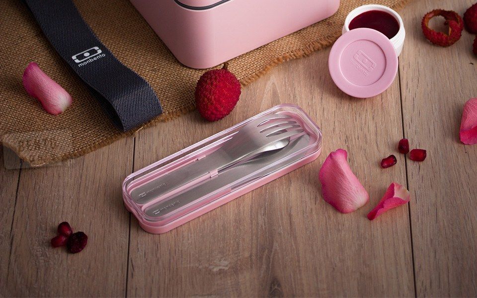 Sztućce MONBENTO Pocket Litchi (różowe) - stal szczotkowana