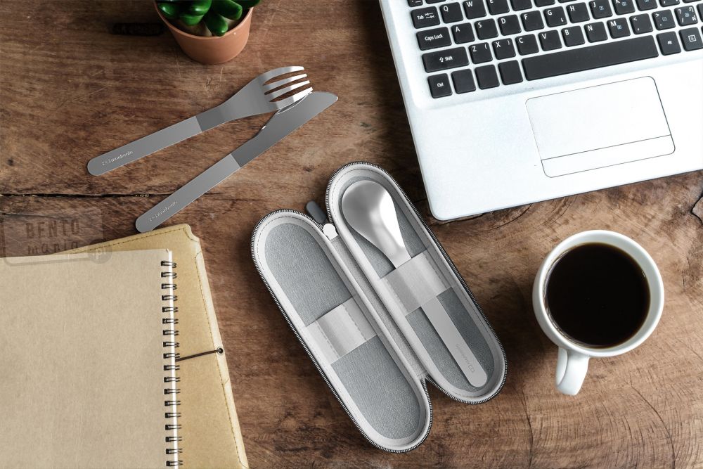• materiał: sztućce - stal nierdzewna, etui - poliester i pianka EVA
