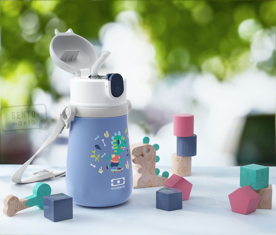 Monbento Stram blue Dino - butelka termiczna dla dzieci 360 ml