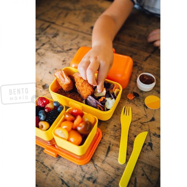 Dzięki 2 mniejszym pojemniczkom (które są w zestawie) będą mogli Państwo przygotować dzieciom posiłek zgodny ze szkołą bento, czyli różnorodny, ładnie wyglądający i zdrowy, a co najważniejsze nic w lunchboxie się nie pomiesza!.