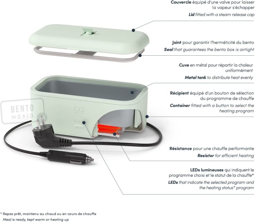 Monbento Warmer to podgrzewacz do jedzenia o pojemności 700 ml, zaprojektowany i wyprodukowany we Francji z materiałów przyjaznych dla człowieka i środowiska - nie zawiera BPA i innych szkodliwych substancji oraz w pełni nadaje się do recyklingu.