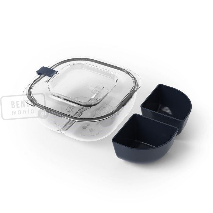 - lunchbox składa się z pojemnika głównego, 2 pojemników na przekąski oraz pokrywy głównej wyposażonej w uszczelkę,