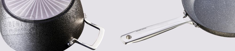 Moneta to nie tylko patelnie. Choć te są znakiem rozpoznawczym firmy i dostępne są w kilku różnych wersjach oraz rozmiarach – od małych patelni „śniadaniowych” o średnicy 20 cm, po duże woki oraz patelnie grillowe.