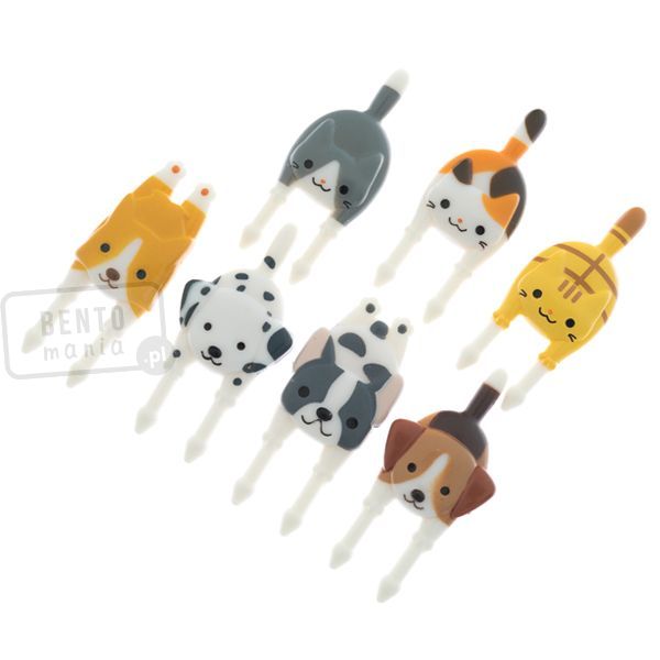 - zestaw zawiera 7 kolorowych, śmiesznych widelczyków z kotkami i pieskami: 4 psy i 3 koty