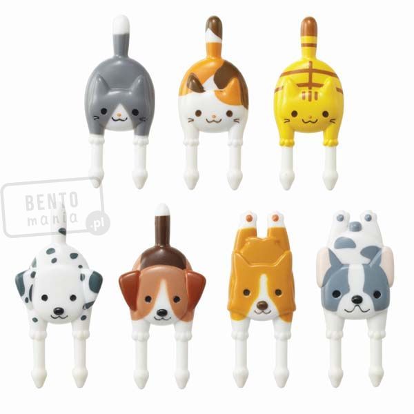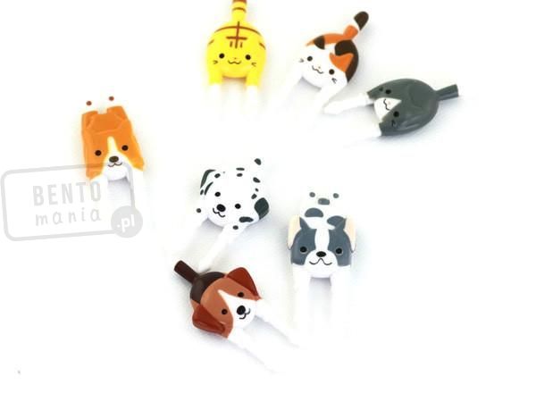 Wykałaczki ozdobne (widelczyki, pikery) 7 szt - Psy i Koty - zestaw zachęcający dziecko do jedzenia