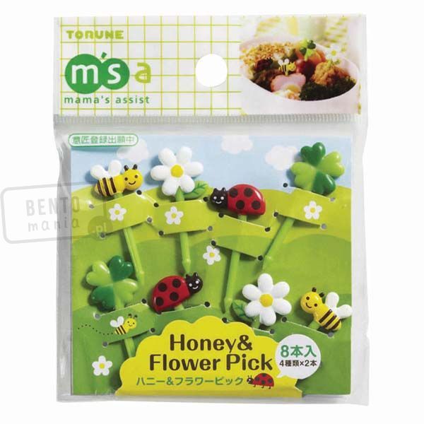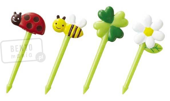 Ozdobne wykałaczki, pikery 8 sztuk - PSZCZÓŁKA, BIEDRONKA, KWIAT I KONICZYNKA
