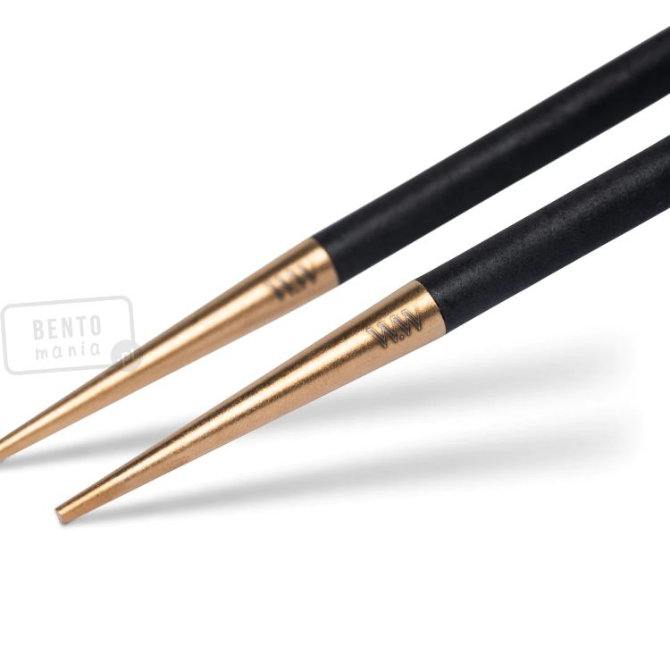 - ręcznie wykonane pałeczki (2 zestawy po 2 sztuki) ze stali nierdzewnej, pokryte 24 karatowym złotem i z rękojeścią z żywicy