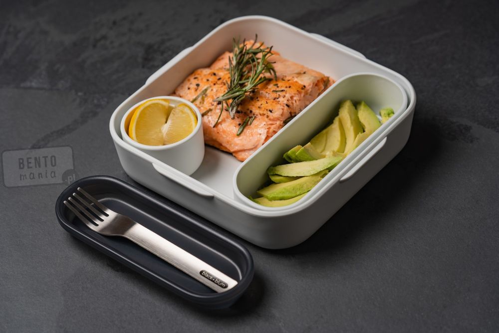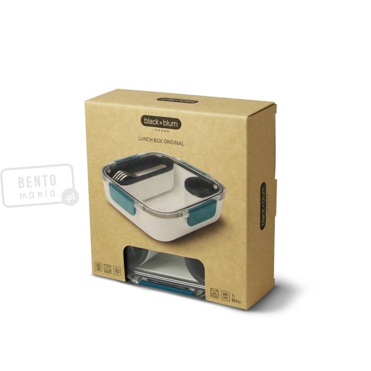 Płaski lunchbox Black Blum 1 litr z widelcem i pojemniczkami