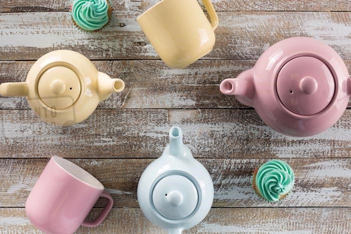- imbryk do herbaty w wiosennym pastelowym kolorze różowym,