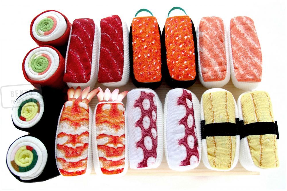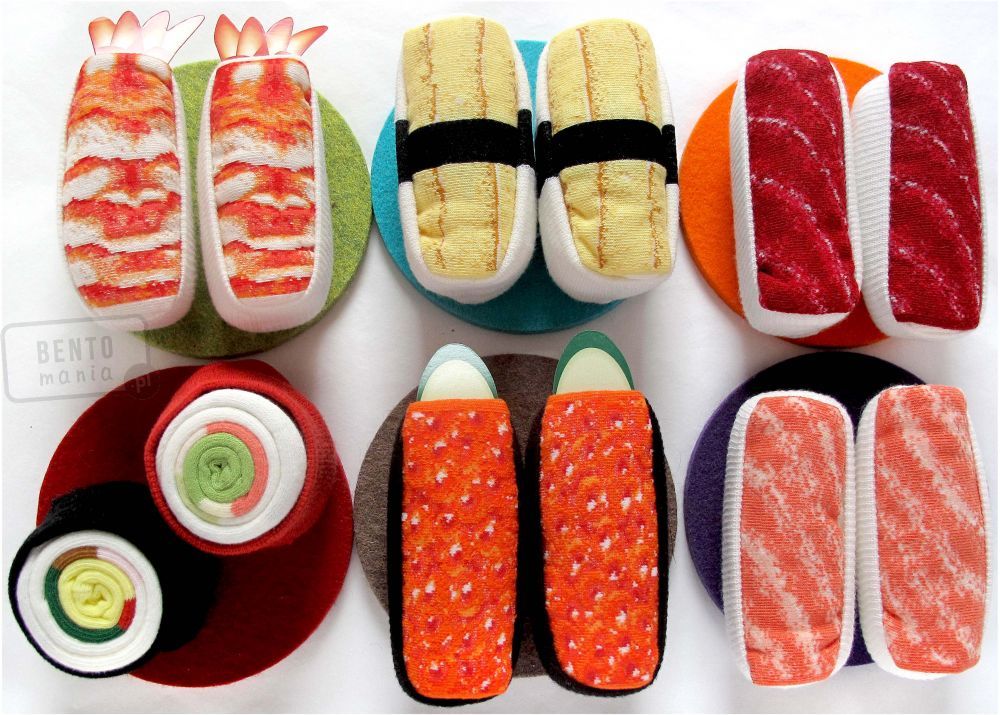 - zwinięte wyglądają jak prawdziwe japońskie sushi (skarpetki w kształcie sushi)