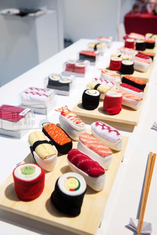 - zwinięte wyglądają jak prawdziwe japońskie sushi (skarpetki w kształcie sushi)