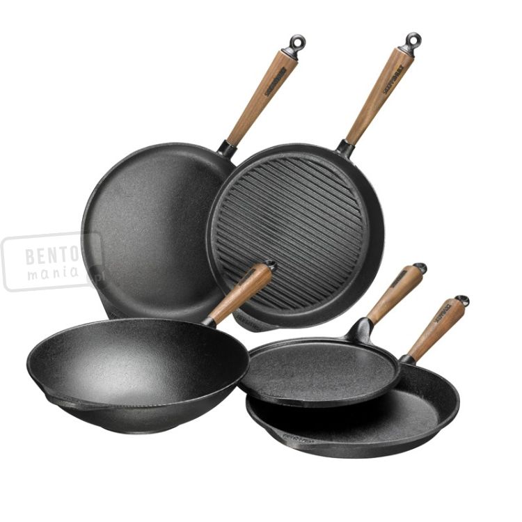 Aby to zrobić nalej niewielką ilość oleju rzepakowego do suchego naczynia, a następnie rozgrzej patelnię do wysokiej temperatury. Pamiętaj, aby naczyń z drewnianą rączką nie ogrzewać w piekarniku/piecu! Po około 10-15 minutach usuń nadmiar oleju. Naczynie powinno mieć kolor czarny co oznacza, że jest ponownie gotowe do użycia.