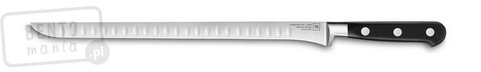 - świetny do krojenia mięs - posiada wąskie ostrze z kieszonkami zapobiegającymi przywieraniu plastrów,