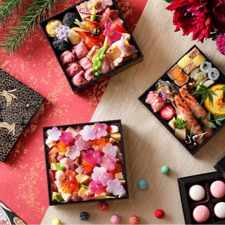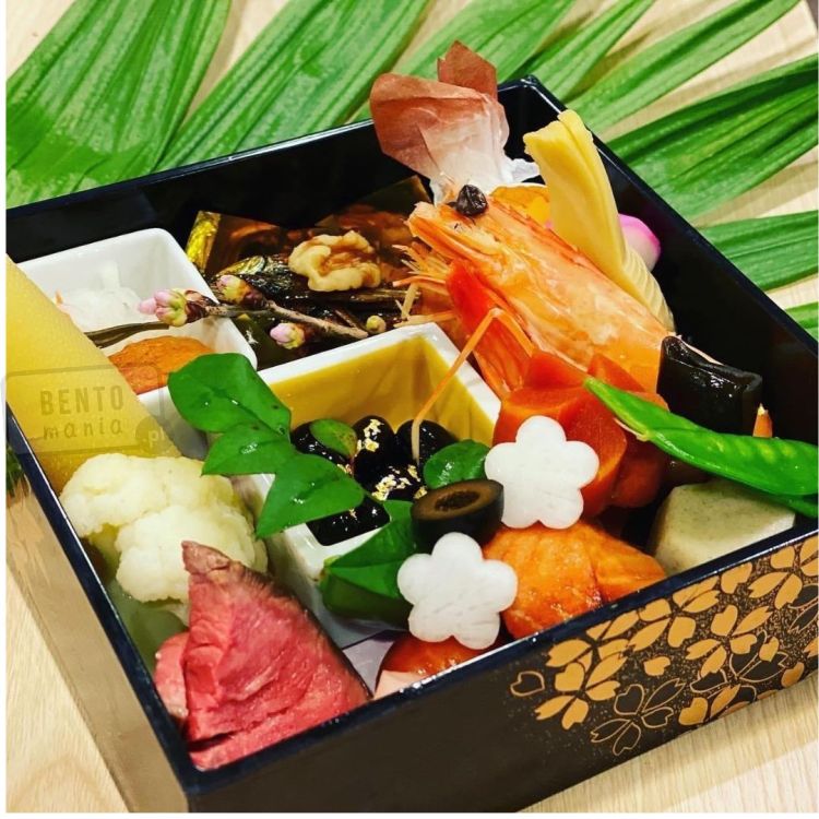 Tradycyjny trzypoziomowy japoński bento box Jubako Sakura.