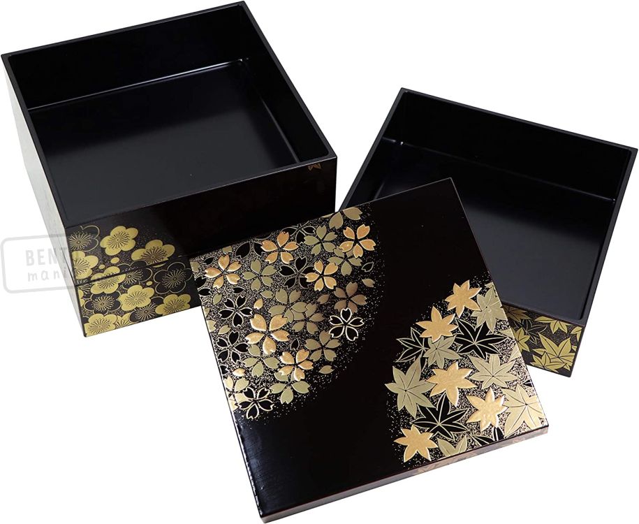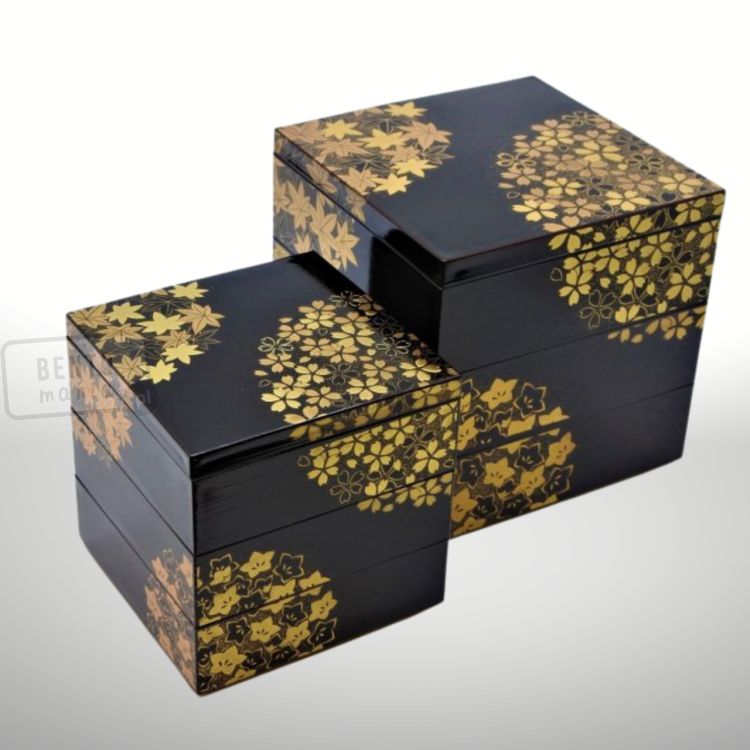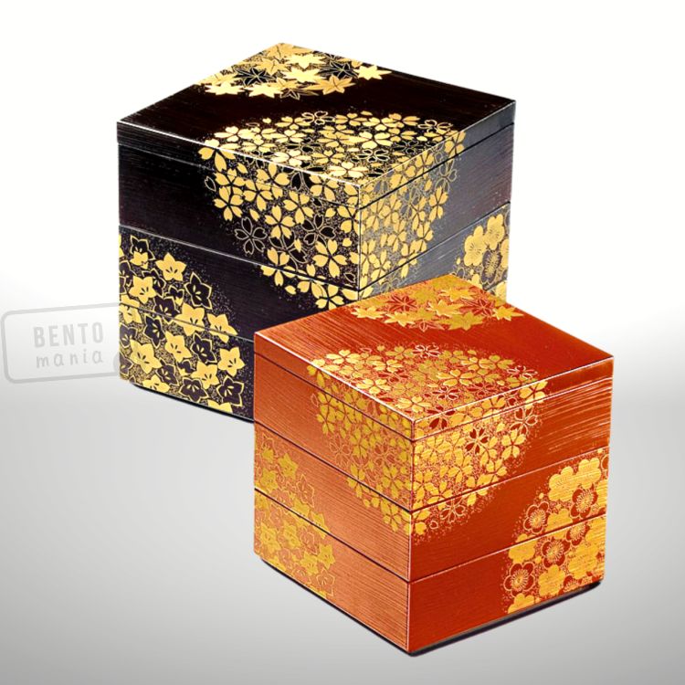 Tradycyjny trzypoziomowy japoński bento box Jubako Hanamaru