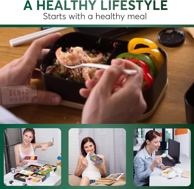 lunchbox ze sztućcami, przegródkami i pojemniczkami