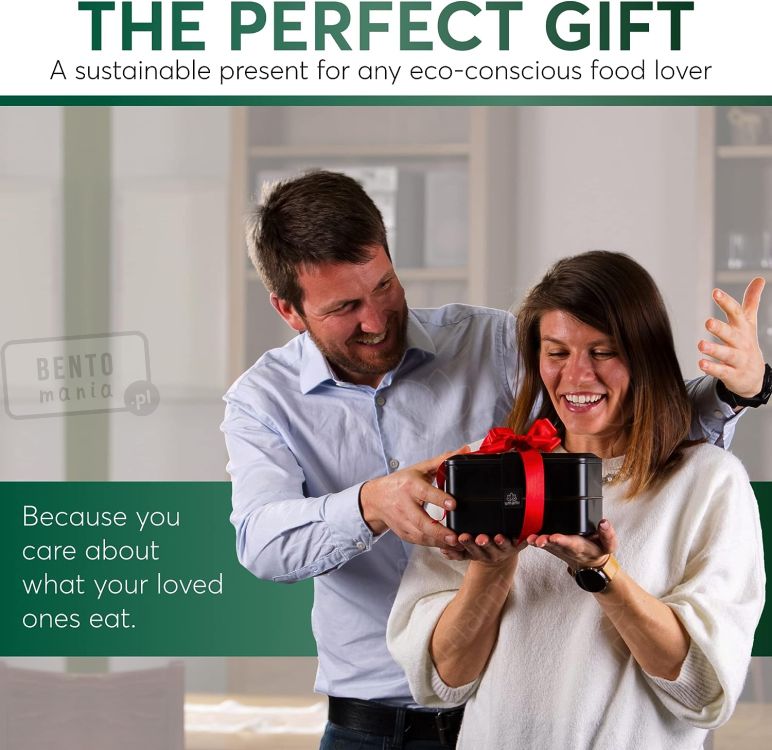 Bento box składa się z dwóch bardzo szczelnych pojemników, ustawianych jeden na drugim. Pojemniki pozostaną w stabilnej pozycji dzięki specjalnej elastycznej gumce. Lunch box można przechowywać w lodówce lub zamrażarce, można myć w zmywarce i można podgrzewać w kuchence mikrofalowej - są więc bardzo praktyczne, a przy tym eleganckie.
