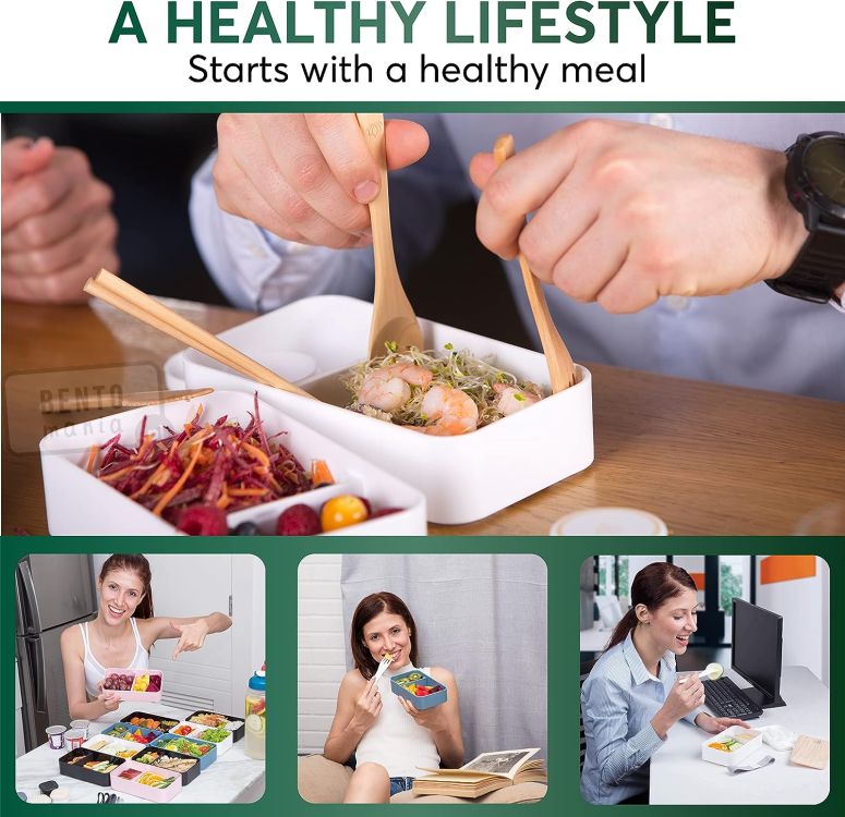 Bento box składa się z dwóch bardzo szczelnych pojemników, ustawianych jeden na drugim. Pojemniki pozostaną w stabilnej pozycji dzięki specjalnej elastycznej gumce. Lunch box można przechowywać w lodówce lub zamrażarce, można myć w zmywarce i można podgrzewać w kuchence mikrofalowej - są więc bardzo praktyczne, a przy tym eleganckie.