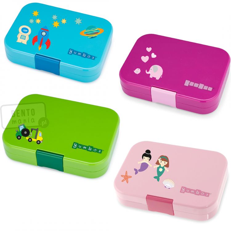 Wodoodporne naklejki ma lunchboxy dla dzieci - Yumbox, Littlelunchbox, Takenaka.