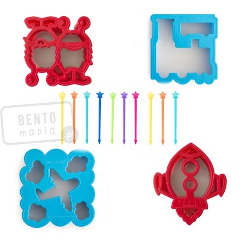 Wykrawacze do chleba, sera, wędlin, ciasta itp.- zestaw zawiera 4 foremki i 10 ozdobnych pikerów bento